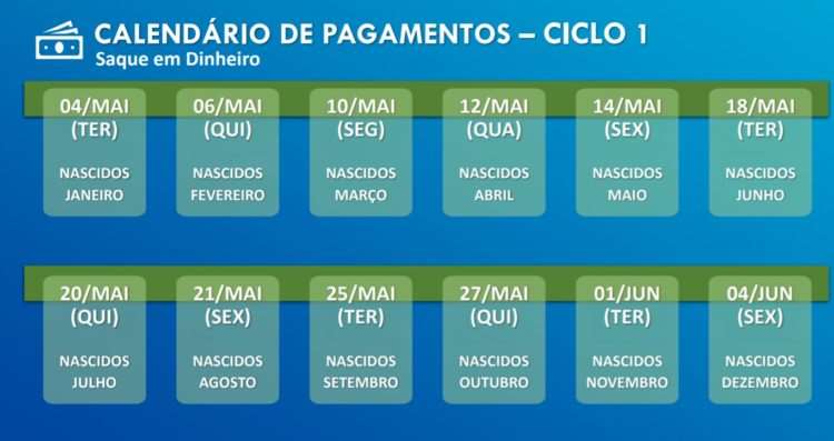 Os pagamentos vão ocorrer de acordo com o mês de nascimento do beneficiário, em quatro ciclos de crédito em conta e saque em dinheiro.